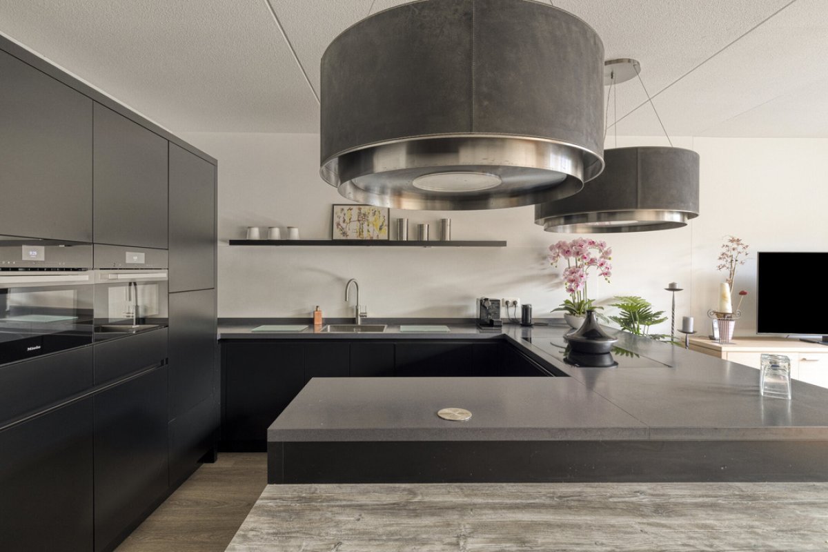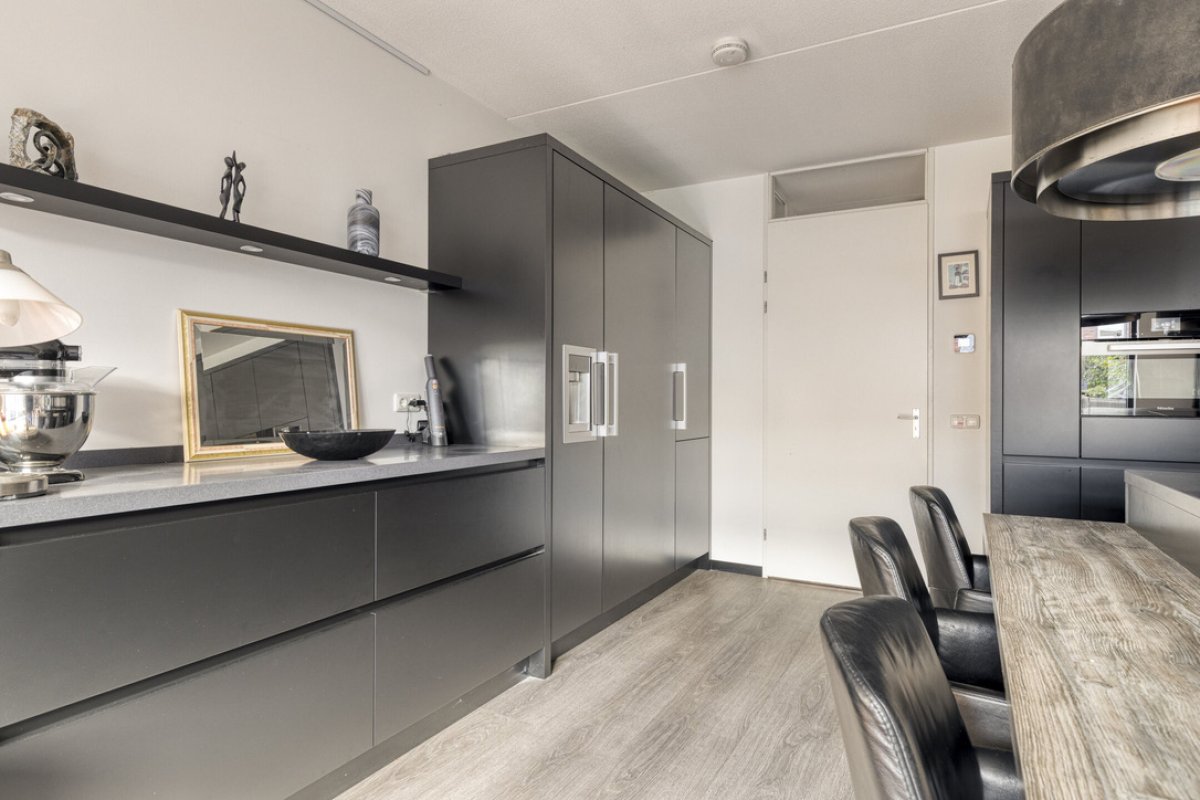 Eerste verdieping: De eerste verdieping vormt het hart van de woning: een ruime living met open keuken, eethoek en zithoek. De moderne keuken met kookeiland is voorzien van diverse inbouwapparatuur waaronder een inductiekookplaat, een combi-oven, een stoomoven, een vaatwasser en een Quooker. De grote ramen en de schuifpui zorgen voor veel lichtinval en geven toegang tot de zonnige daktuin. Daarnaast zijn er op deze verdieping twee werk-/slaapkamers aan de voorzijde, een toilet en een praktische inbouwkast.