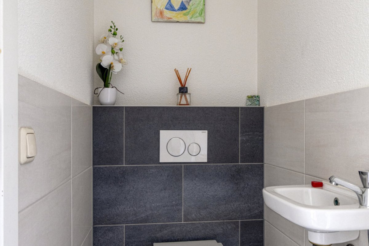 Tweede verdieping: Hier bevinden zich drie ruime slaapkamers, waarvan één met een walk-in closet. De badkamer is uitgerust met een douche en een wastafelmeubel. Verder is er een separaat toilet en een handige berging met aansluiting voor de wasmachine.
