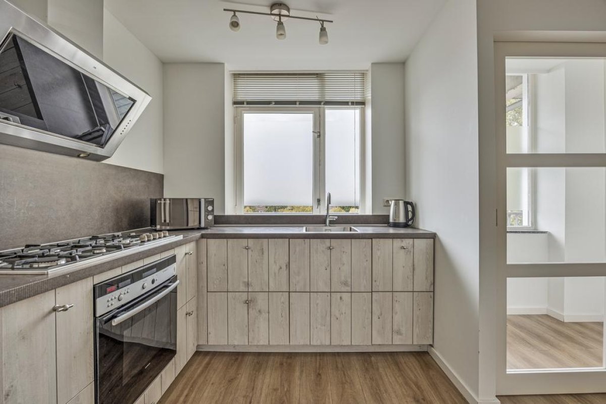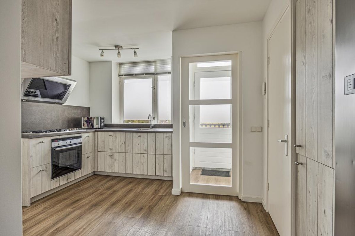 Met de lift of de trap in de centrale hal komt u op de derde verdieping waar u via een galerij toegang heeft tot het appartement. De entreehal komt uit in de moderne ruime keuken die is voorzien van een 4-pitsgaskookstel met wokbrander, een oven en een vaatwasmachine. Vanuit de keuken komt u in de centrale hal van de woning die toegang biedt tot de woonkamer, de 2 slaapkamers, het toilet en de moderne badkamer. De woonkamer en de slaapkamer aan de voorkant hebben een deur naar het balkon. Beide slaapkamers hebben voldoende ruimte voor een 2-persoonsbed en bieden volop kastruimte. De moderne badkamer heeft een inloopdouche, een handdoekradiator en een wastafelmeubel. In de keuken is een berging waar de cv-ketel is geplaatst en hier zit ook de aansluiting voor de wasmachine. Op de gehele verdieping ligt een pvc-vloer. Tevens beschikt de woning over een berging op de begane grond.