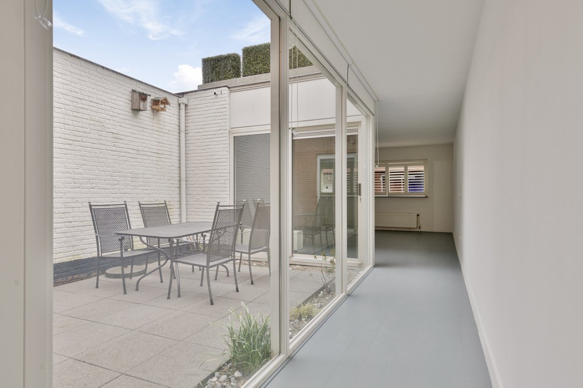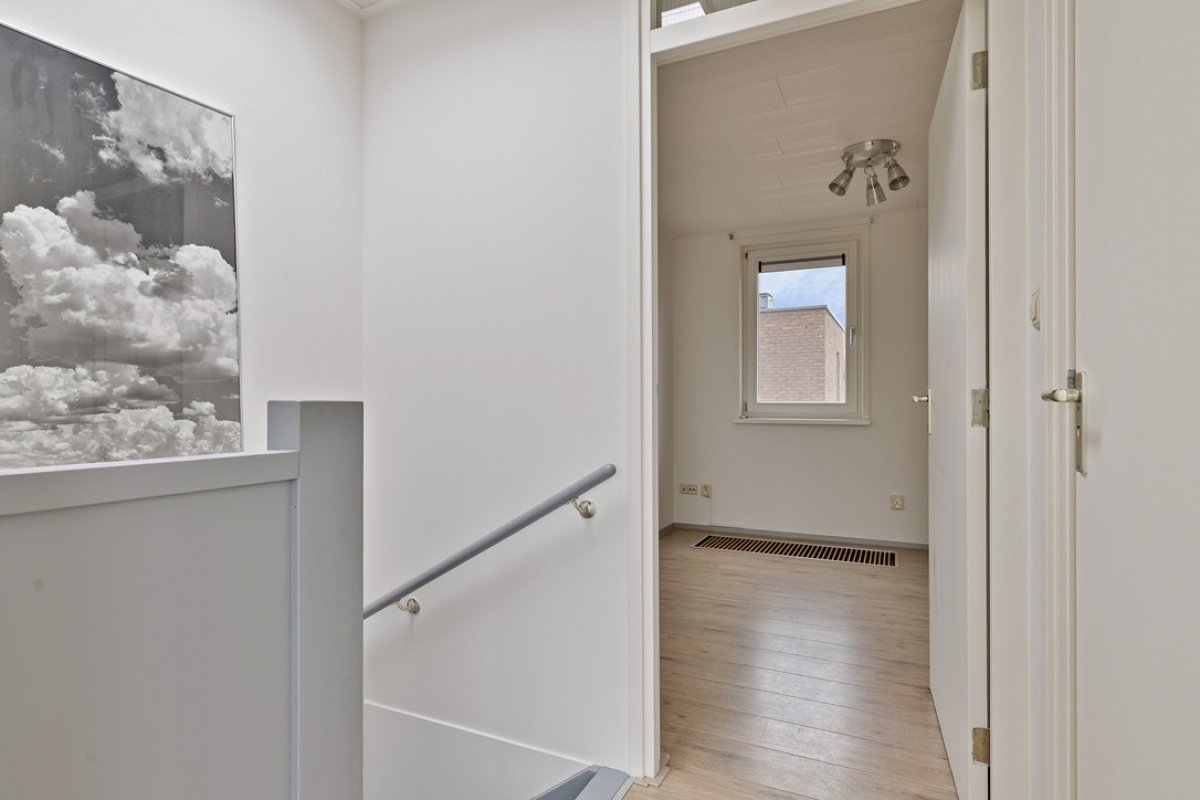 Begane grond: via de overkapte entree komt u in de ruime hal met toegang tot de meterkast, het toilet en een praktische berging aan de voorzijde die ook vanaf buiten toegankelijk is. De hal leidt naar de moderne woonkeuken met inbouwapparatuur en veel kastruimte. De keuken is uitgerust met een inductiekookplaat, een oven, een stoomoven, een magnetron, een koelvriescombinatie en een vaatwasser. Direct grenzend aan de keuken vindt u de eetkamer met ruimte voor een grote eettafel. In het midden van de woning ligt een patio van circa 14m² die voor veel lichtinval zorgt en bereikbaar is via schuifpuien vanuit zowel de keuken als de woonkamer. Aan de achterzijde bevindt zich de ruime en lichte woonkamer met zicht op het patio-terras. Er is tevens nog een berging onder de trap naar boven.