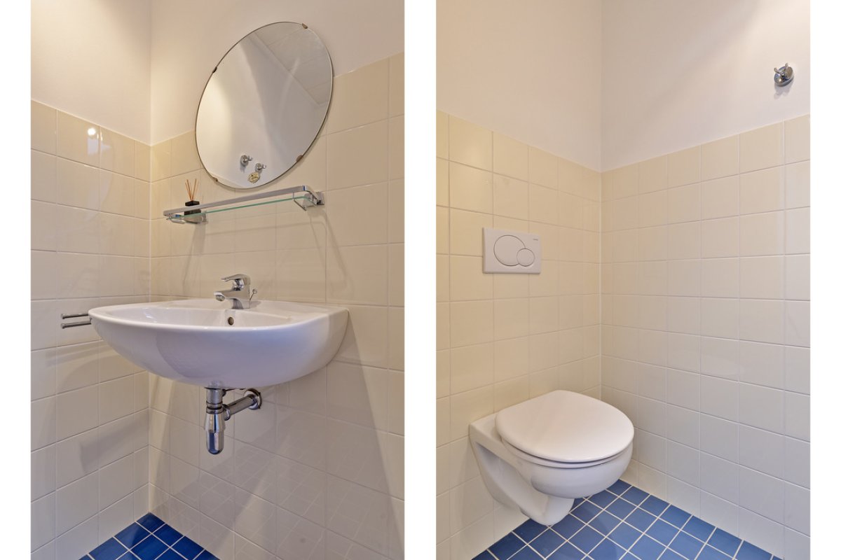 Second floor: A fixed staircase leads to the second floor, where there are two more spacious bedrooms and a toilet with washbasin. The bedroom at the rear has sliding doors that open onto the sunny southwest-facing rooftop terrace. A second bathroom could easily be created on this floor.
