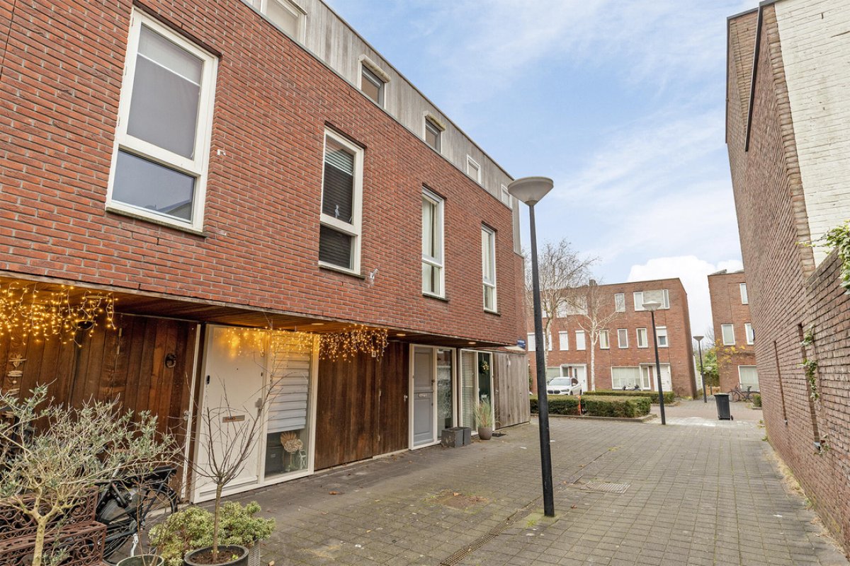 This very well-maintained and energy-efficient family home of 151 m² is located on a quiet, car-free courtyard in the popular and family-friendly neighborhood of De Aker. The property offers a great deal of privacy, thanks to its location within the courtyard and the lack of direct overlooking from the front. Inside, you’ll find a spacious kitchen-diner and a bright living room, both connected to the sunny patio, a lovely space to relax or enjoy time with family and friends. The home also features four generous bedrooms, a large bathroom, a sunny southwest-facing rooftop terrace, and an indoor storage room. A practical bonus: there is a toilet on each floor. The ground lease has been bought off in perpetuity.
