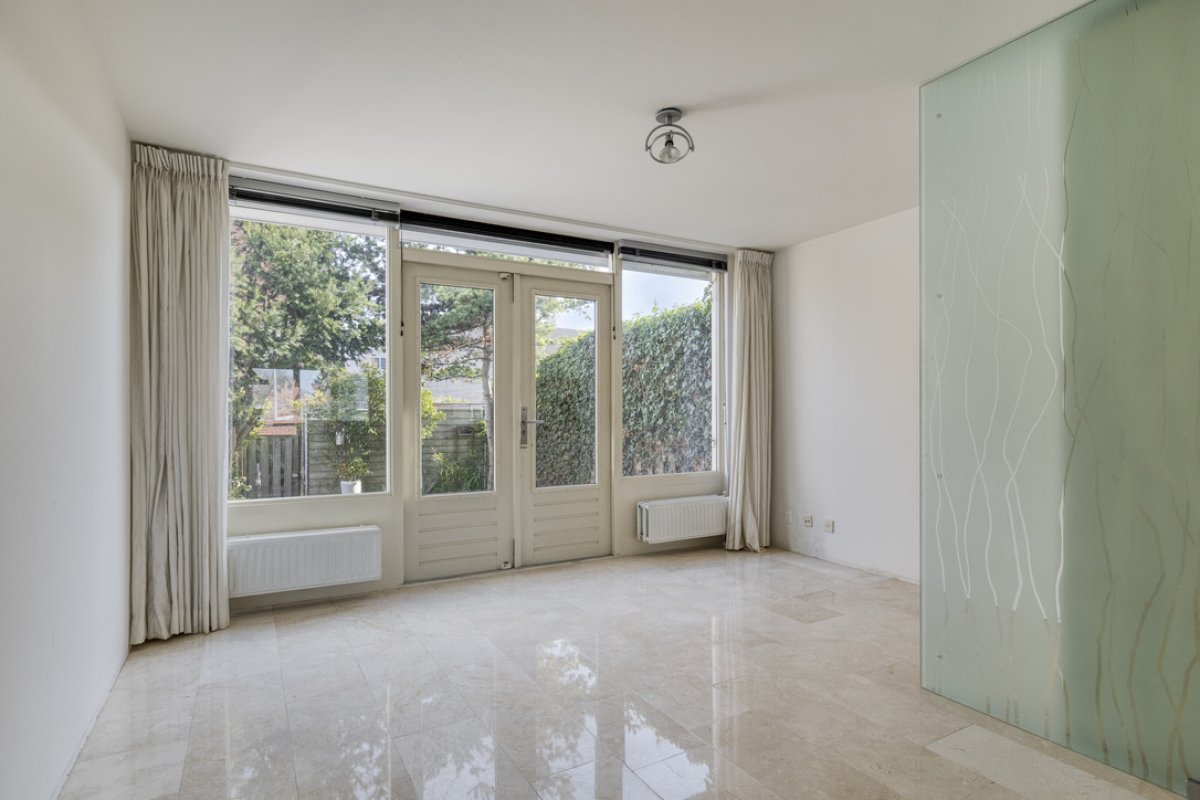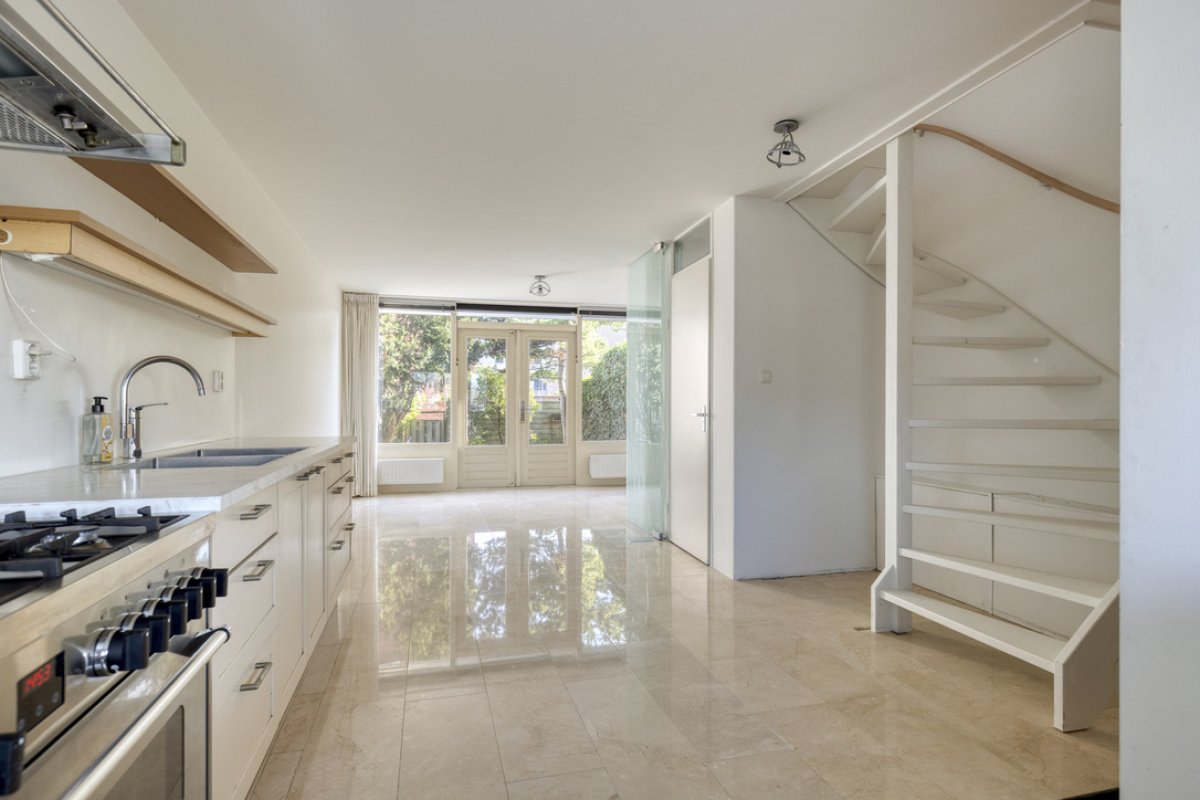 Ground floor: The covered entrance leads to the spacious and bright kitchen-diner with views of the garden. The kitchen is equipped with a six-burner gas hob and a double sink, and the front windows provide an open view over Ecuplein. Thanks to the large windows and sliding doors to the garden, this is a wonderfully light living space. The sunny back garden faces south, allowing you to enjoy the sun almost all day. This floor also includes a separate toilet. The marble floor with underfloor heating provides additional comfort.