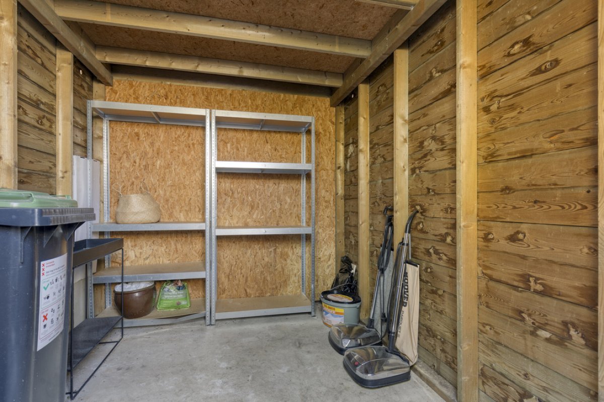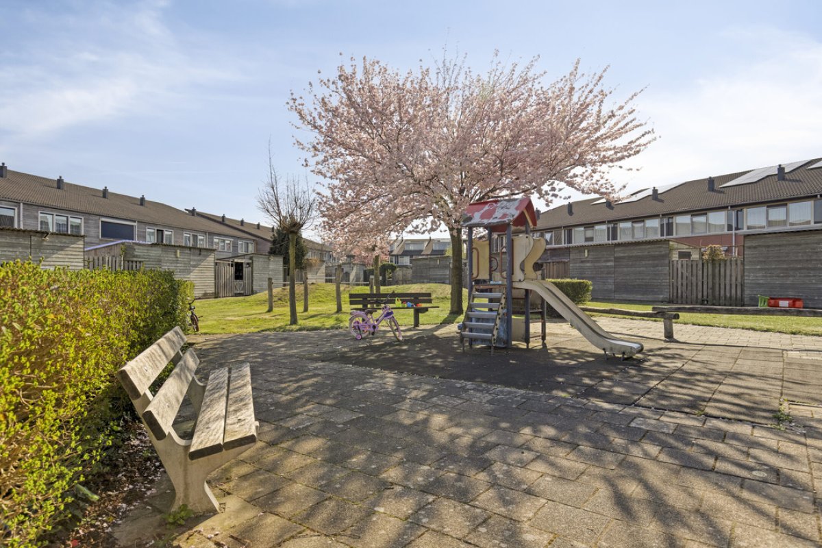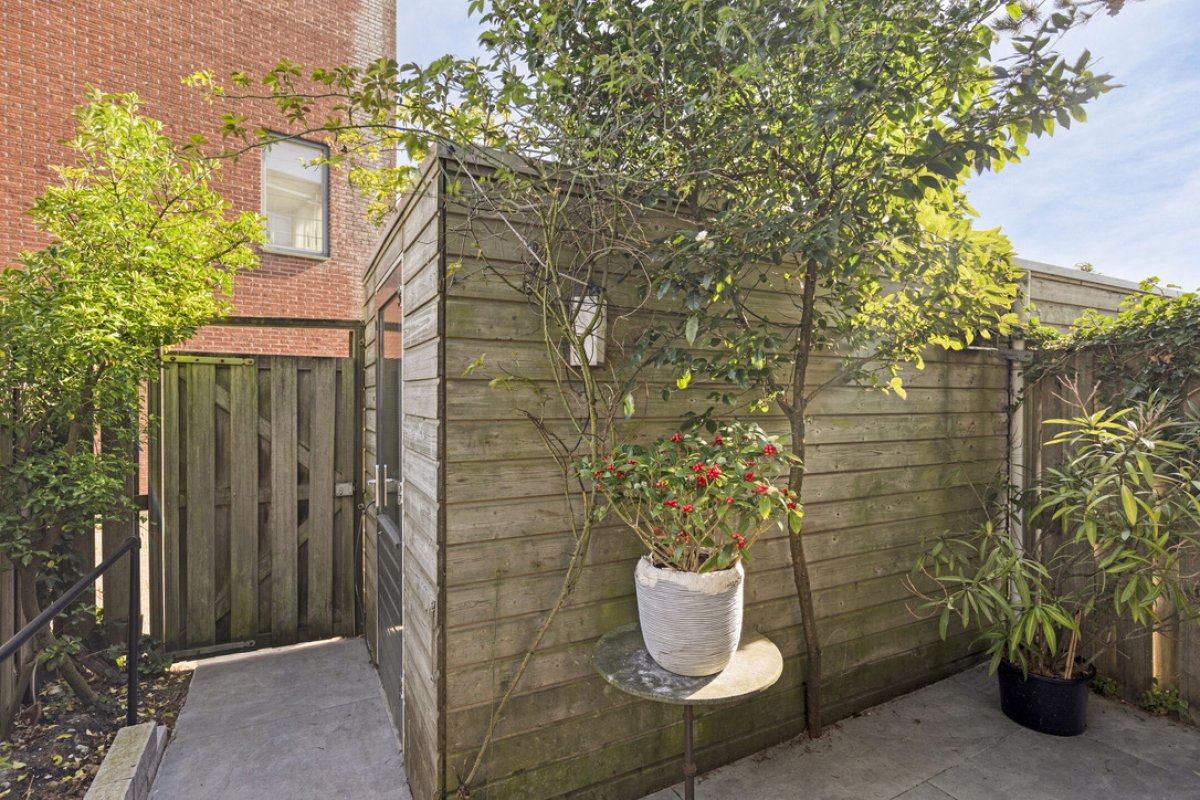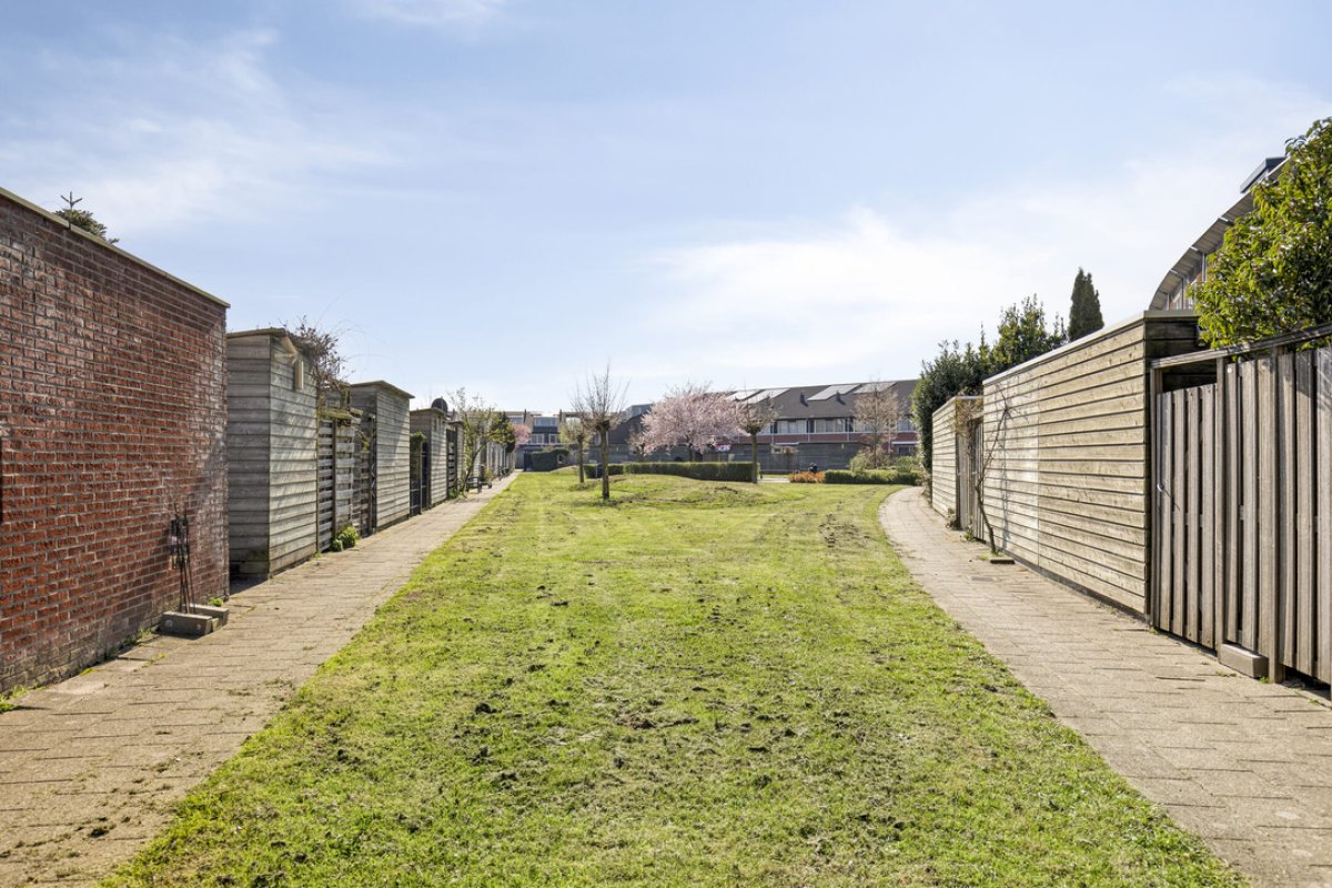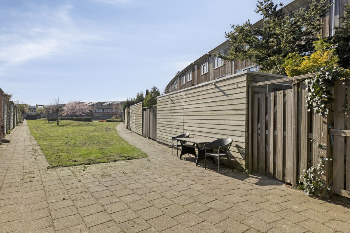 Tuin: de moderne tuin heeft een gunstige ligging op het zuiden waardoor u bijna de gehele dag van de zon kunt genieten. De tuin beschikt over een houten schuur van 7m2. Via een achterom komt u in de afgesloten gemeenschappelijke groene binnentuin waar de buurt elkaar ontmoet op het grasveld, bij de speelplaats en tijdens de jaarlijkse buurtbarbecue.